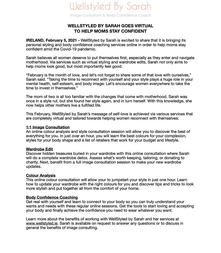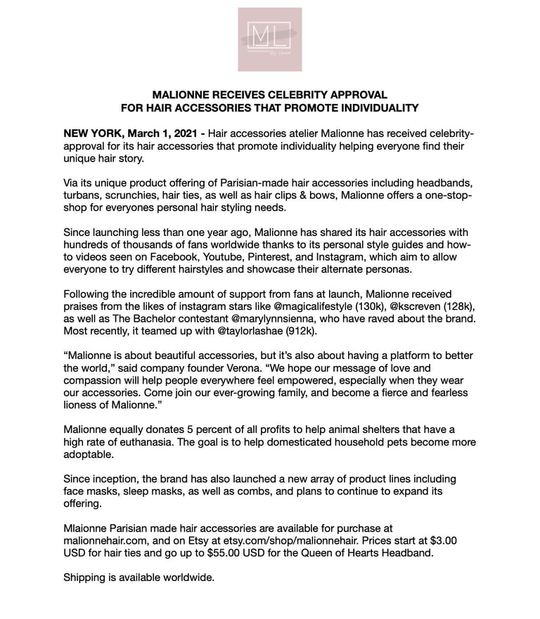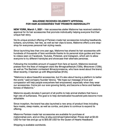 Get your brand the media attention it deserves with a timely and current press release and media kit. As an experienced journalist and communications expert, I understand what it takes to get your brand featured in the most popular and relevant media outlets. My press releases have led to broadcast features on The Marilyn Denis Show and Your Morning, as well as print and digital media plugs in The Kit, FASHION Magazine, the Globe & Mail and more.